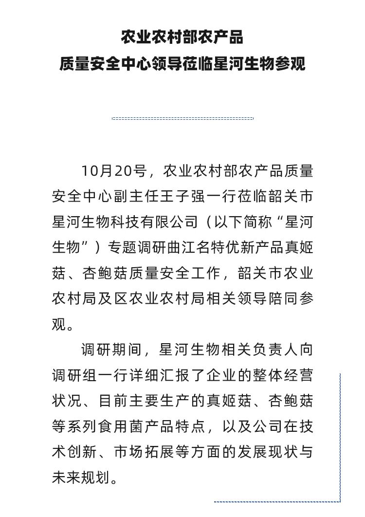 农业农村部农产品质量安全中心领导莅临星河生物参观