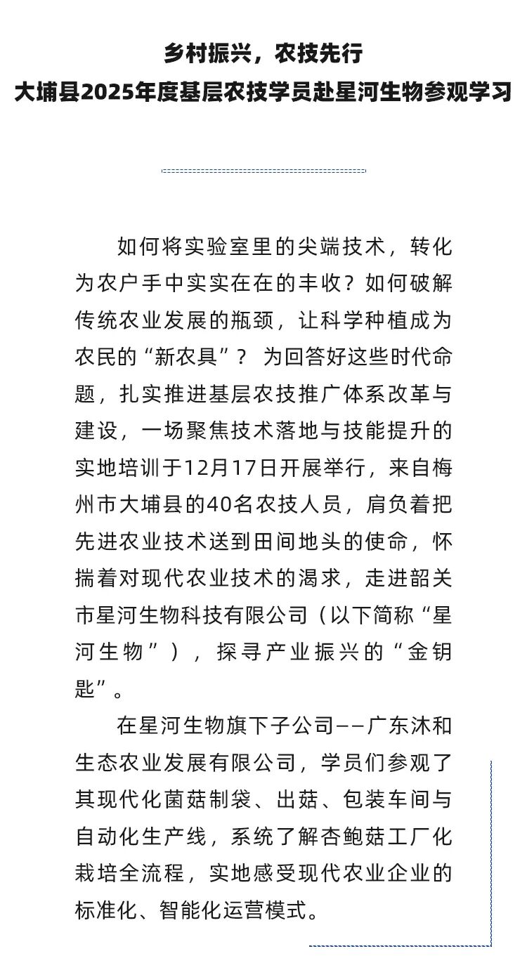 村振兴,农技先行 | 大埔县2025年度基层农技学员赴星河生物参观学习