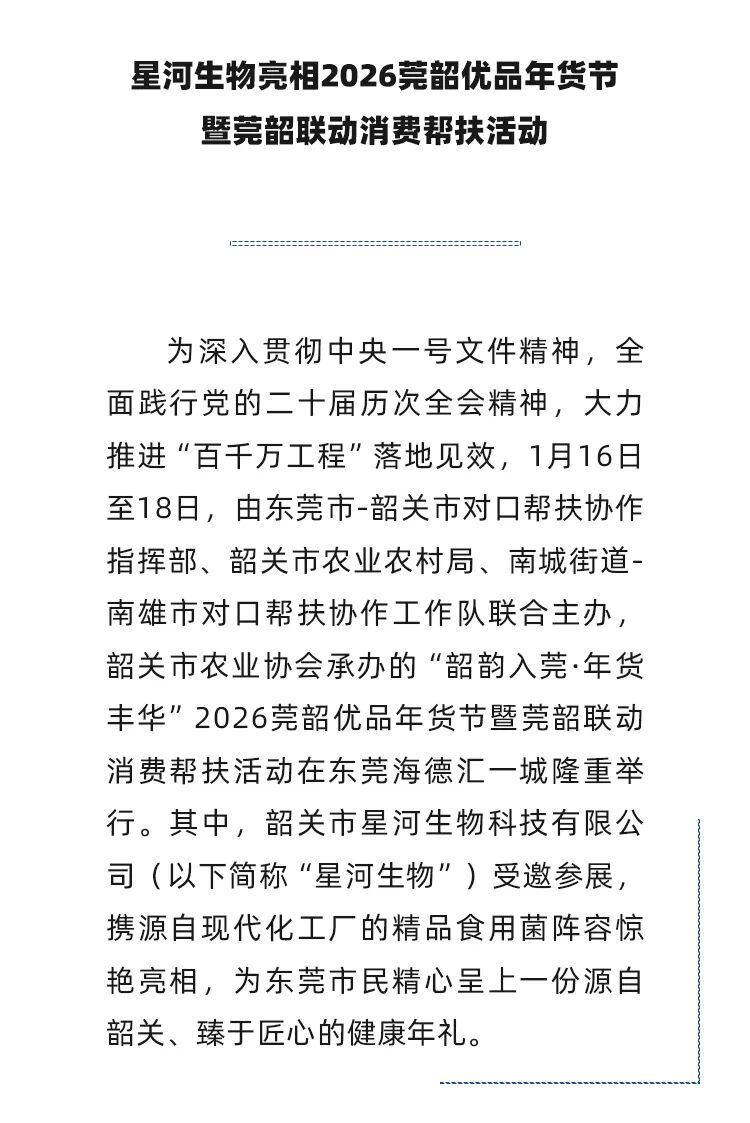 星河生物 | 亮相2026莞韶优品年货节暨莞韶联动消费帮扶活动