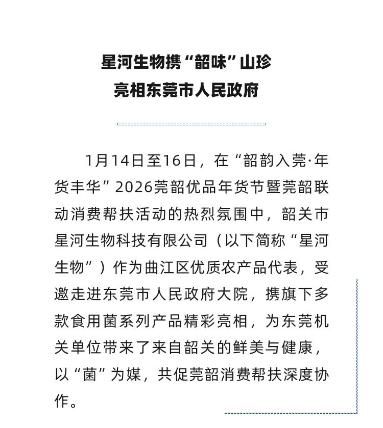 星河生物携“韶味”山珍亮相东莞市人民政府